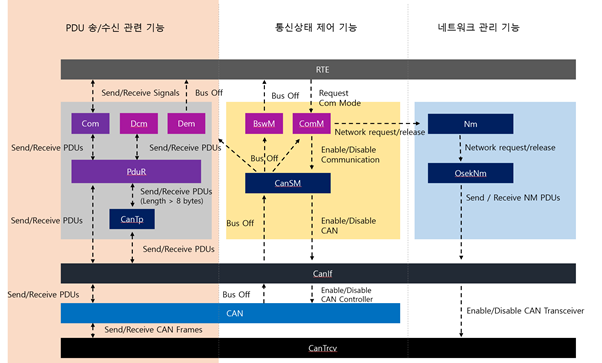 CAN 통신 스택은 아래와 같이 크게 3가지 기능으로 구분할 수 있다.
