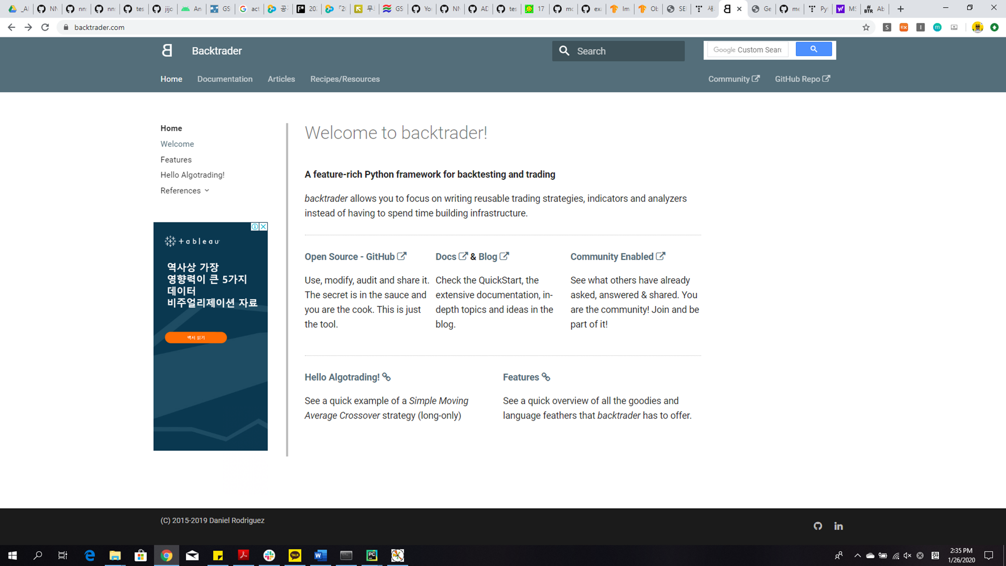 어쨌든 백트레이더는 이런식으로 활용한다. 앞으로 시중에 나와있는 많은 전략들을 프로그래밍하여 여러 기업들에 테스트를 해보면서 과연 어떤 전략이 효과적인지 알아보도록 하겠다.