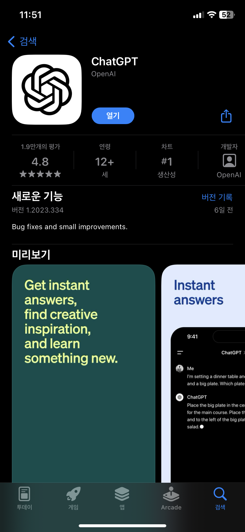 우선 앱스토어에 가서 ChatGPT를 설치하자!