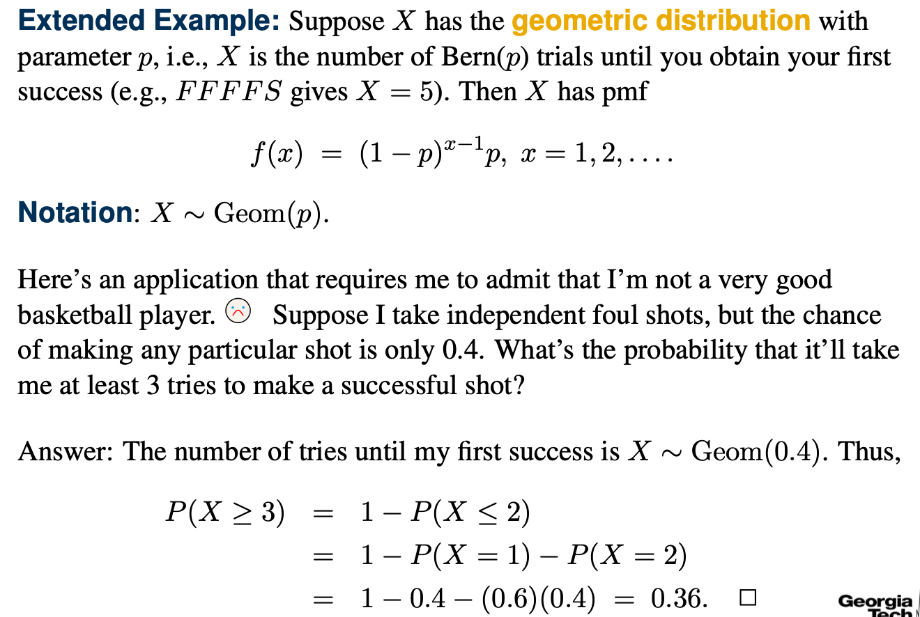 geometric 분포는 베르누이 분포에서 각 시도를 해서 처음으로 성공하는 확률에 대한 분포이다.