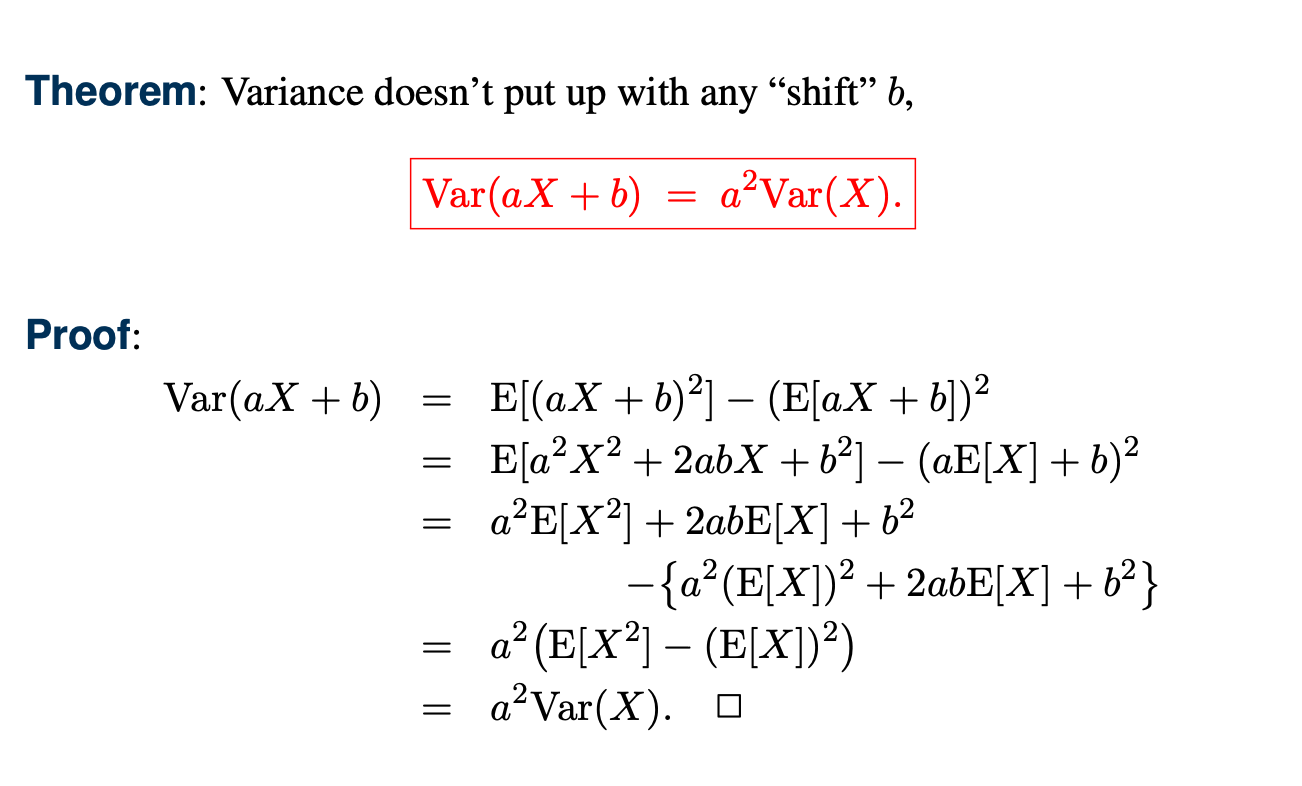 a, b는 E[] 밖으로 빠져나갈 수 있는데 선형함수 특성을 가지기 때문이다.