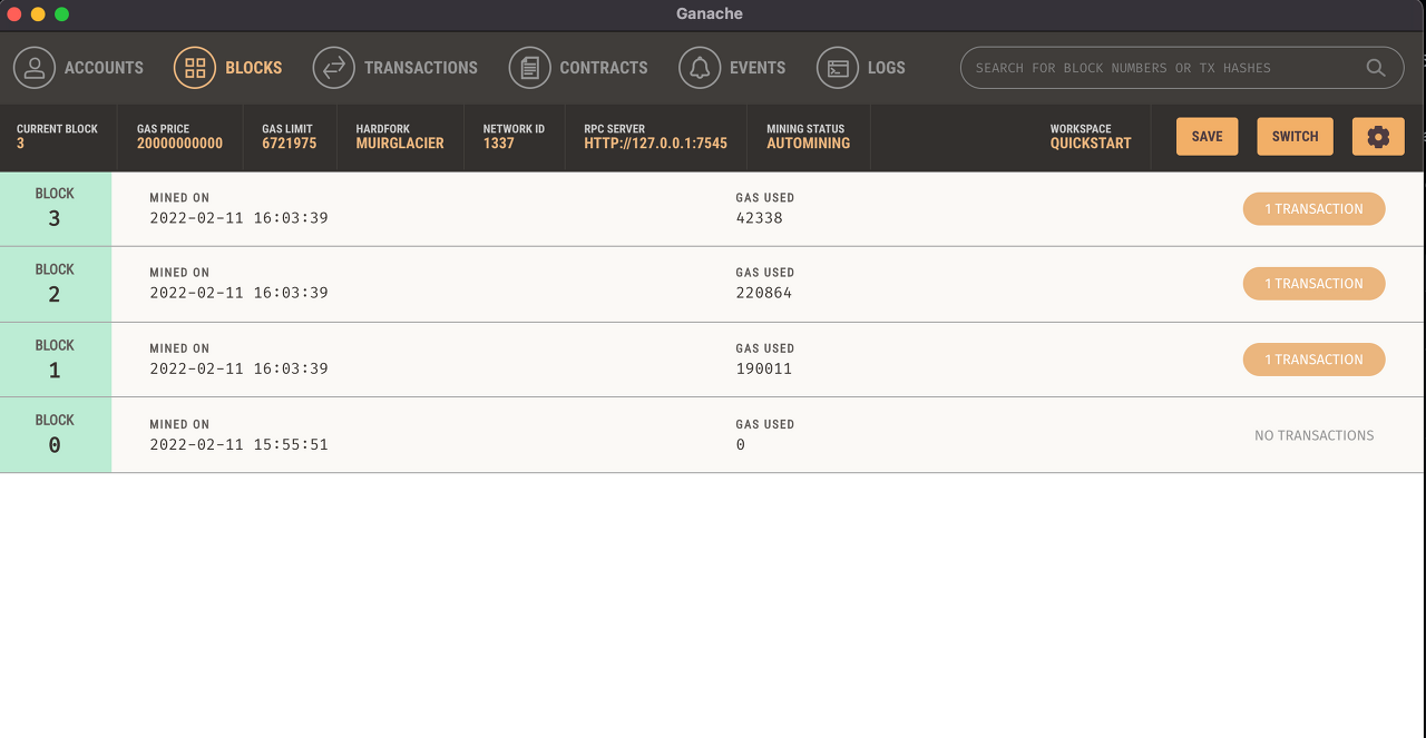Ganache : Ethereum Blockchain Local 환경