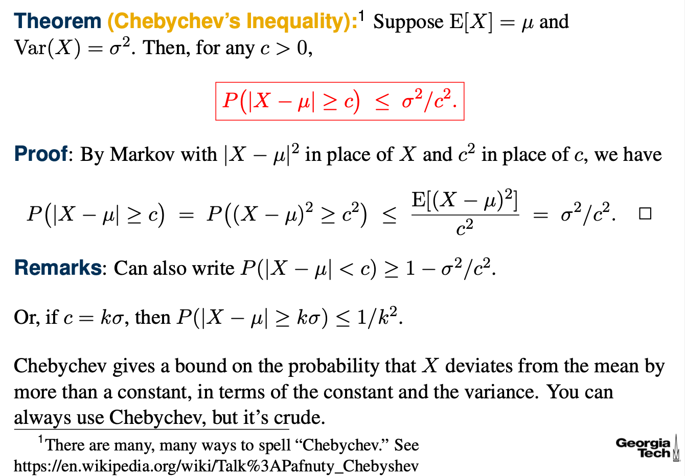 즉, 어떤 양의 실수 이상의 확률 변수에 대해서는 어떤 확률의 이상을 항상 가진다고 말할 수 있다.