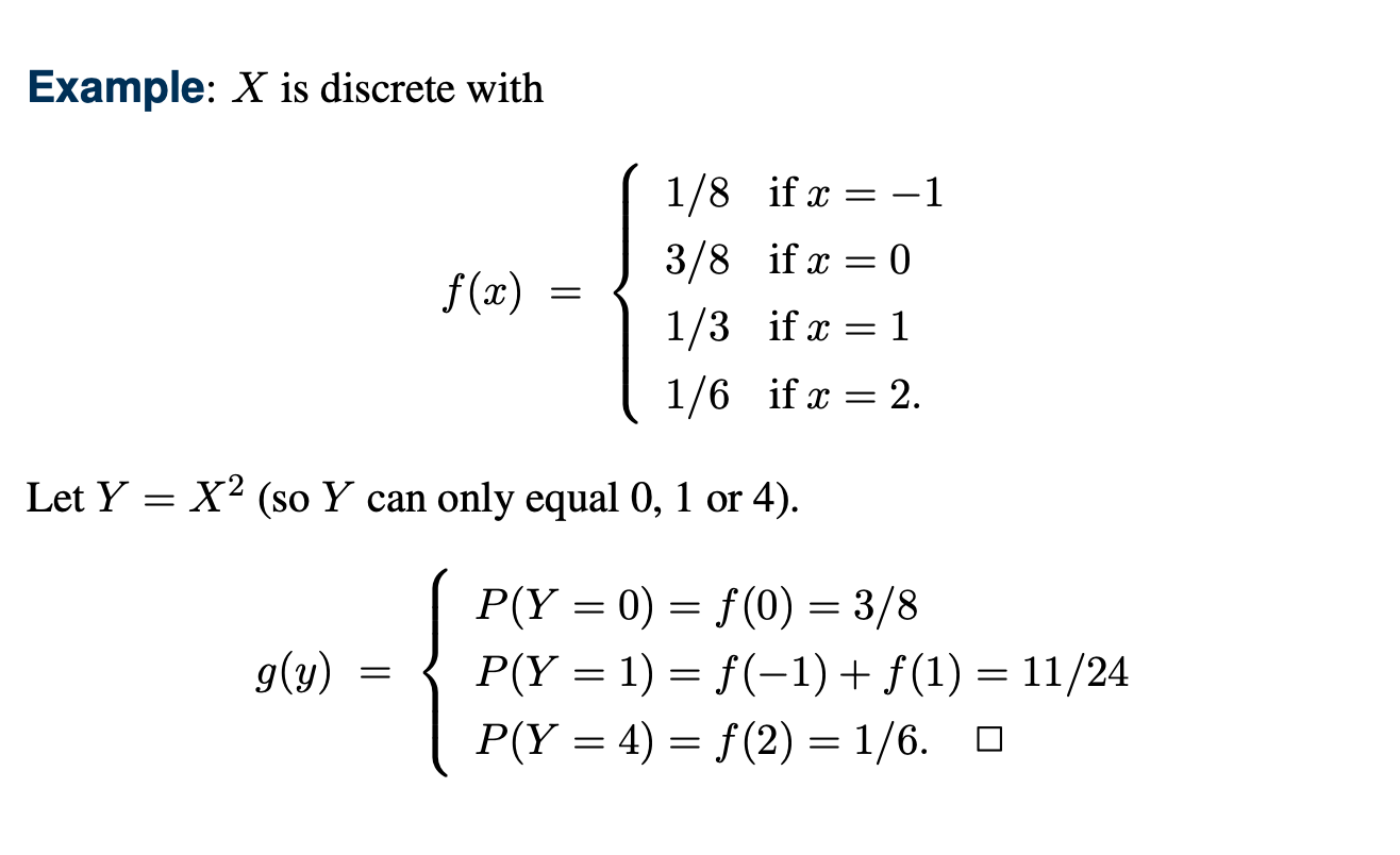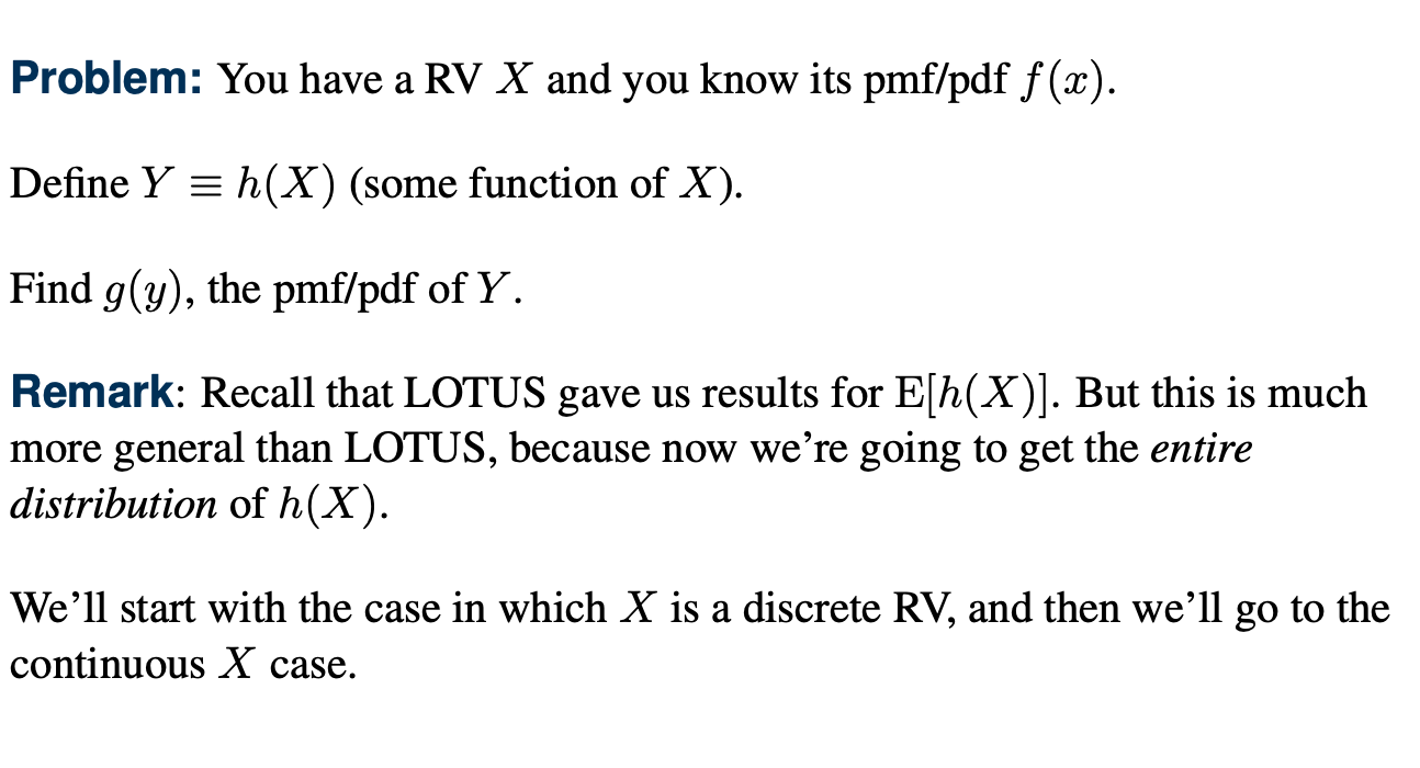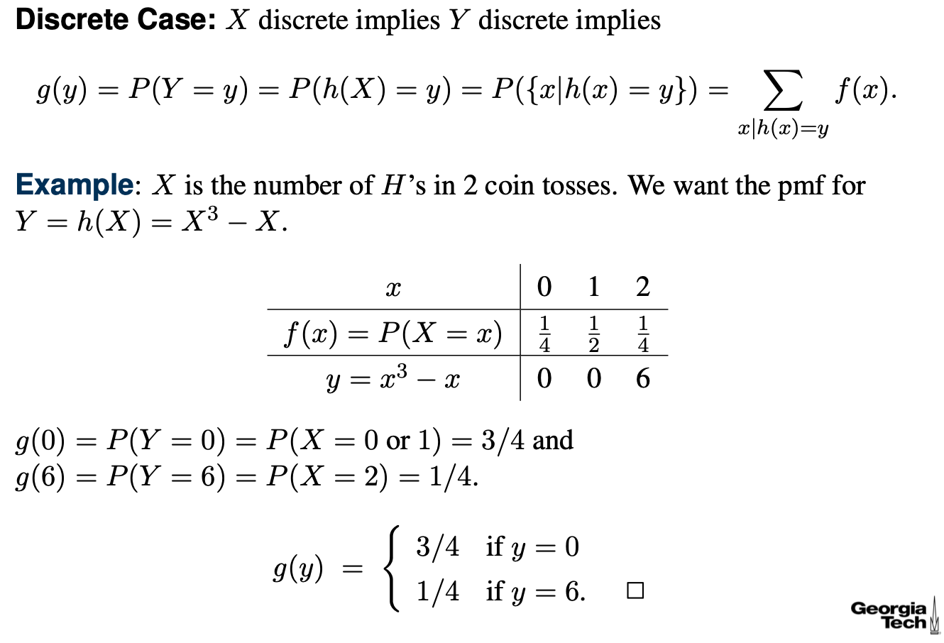 이 때 어떤 확률변수 Y = h(X)에 대한 pmf/pdf를 구해보자.
