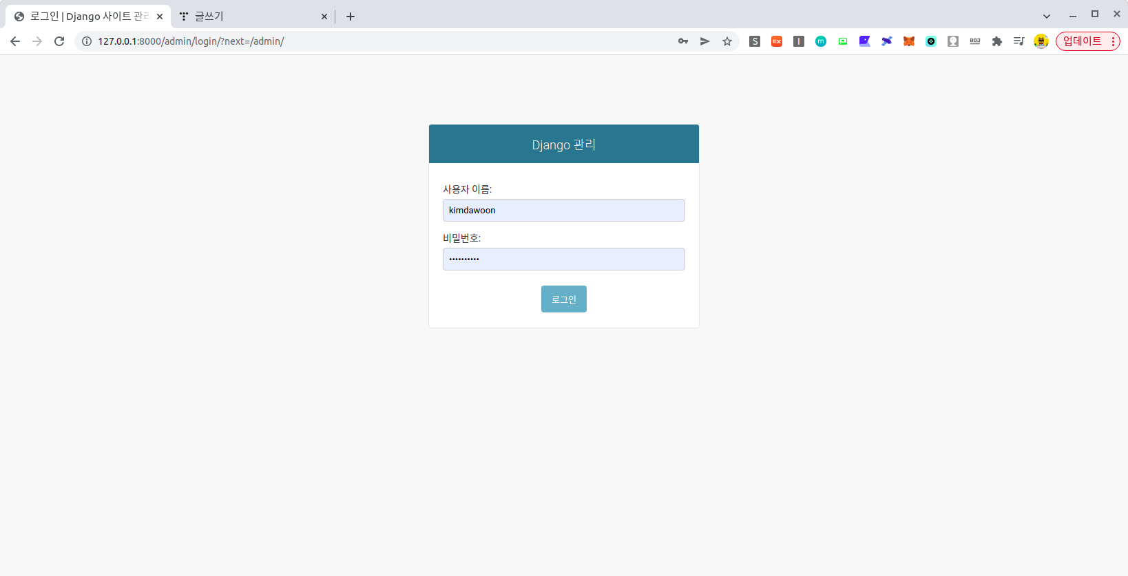 이렇게 생성된 계정을 가지고 admin 페이지에 가서 입력하고 접속하면 아래와 같은 관리자 페이지를 확인할 수 있다.