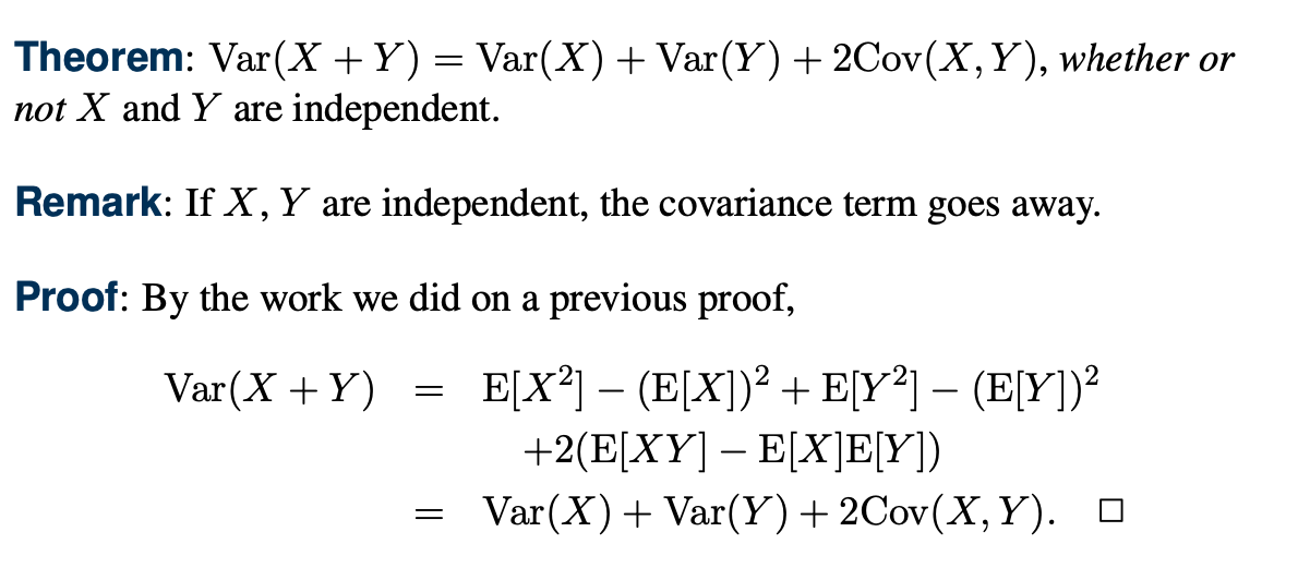 Var(X + Y) = E[(X + Y)^2] - (E[X + Y])^2를 이용해서 전개할 수 있다.