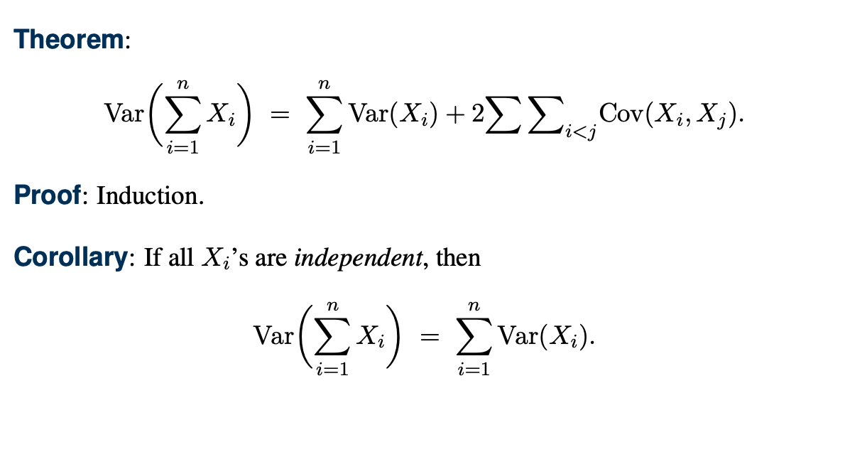n개의 RV에 대한 Variance를 계산할 때도 위와 같이 응용할 수 있다.