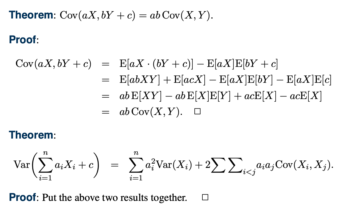 Cov 내에 각 RV의 비례상수의 경우 Cov 계산 시 밖으로 빼서 곱할 수 있다.