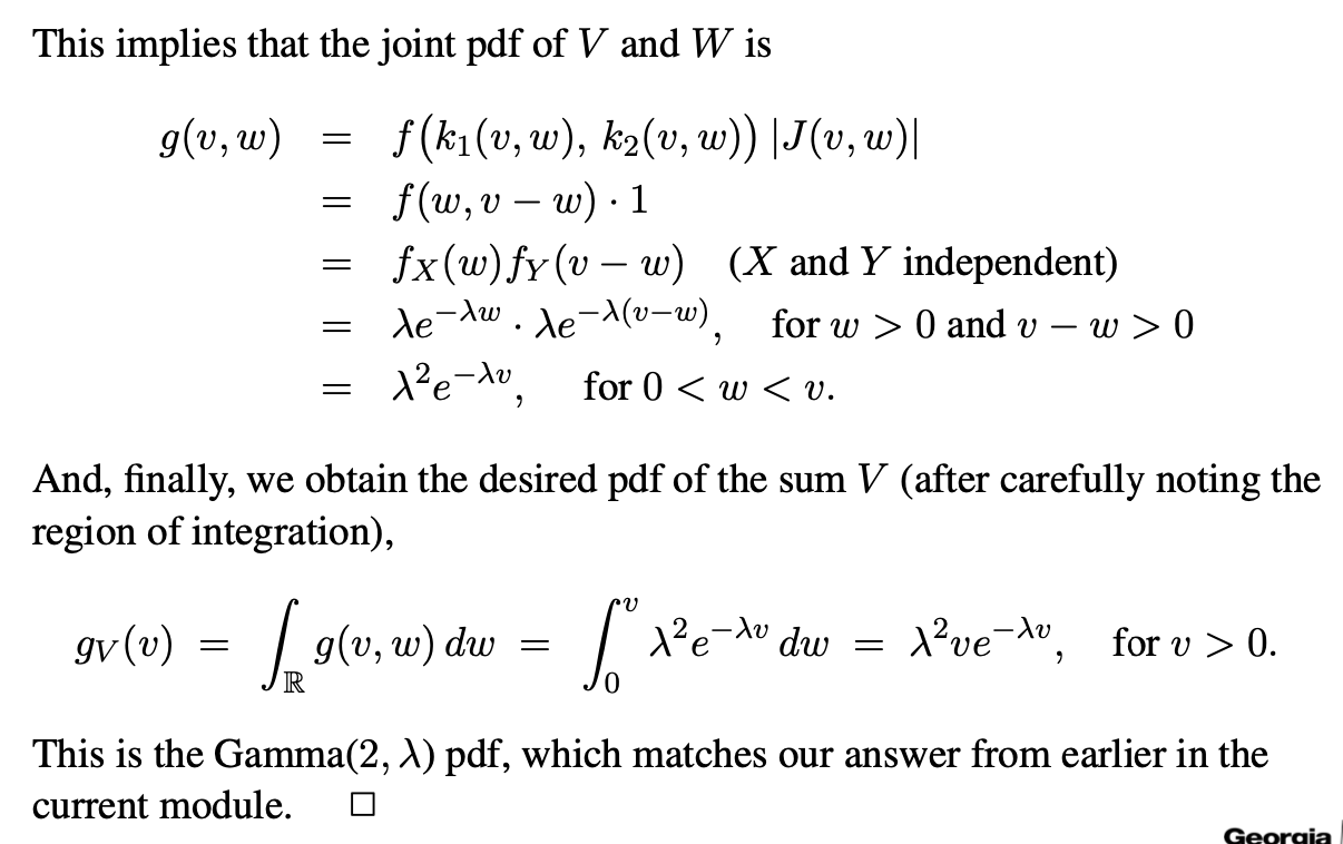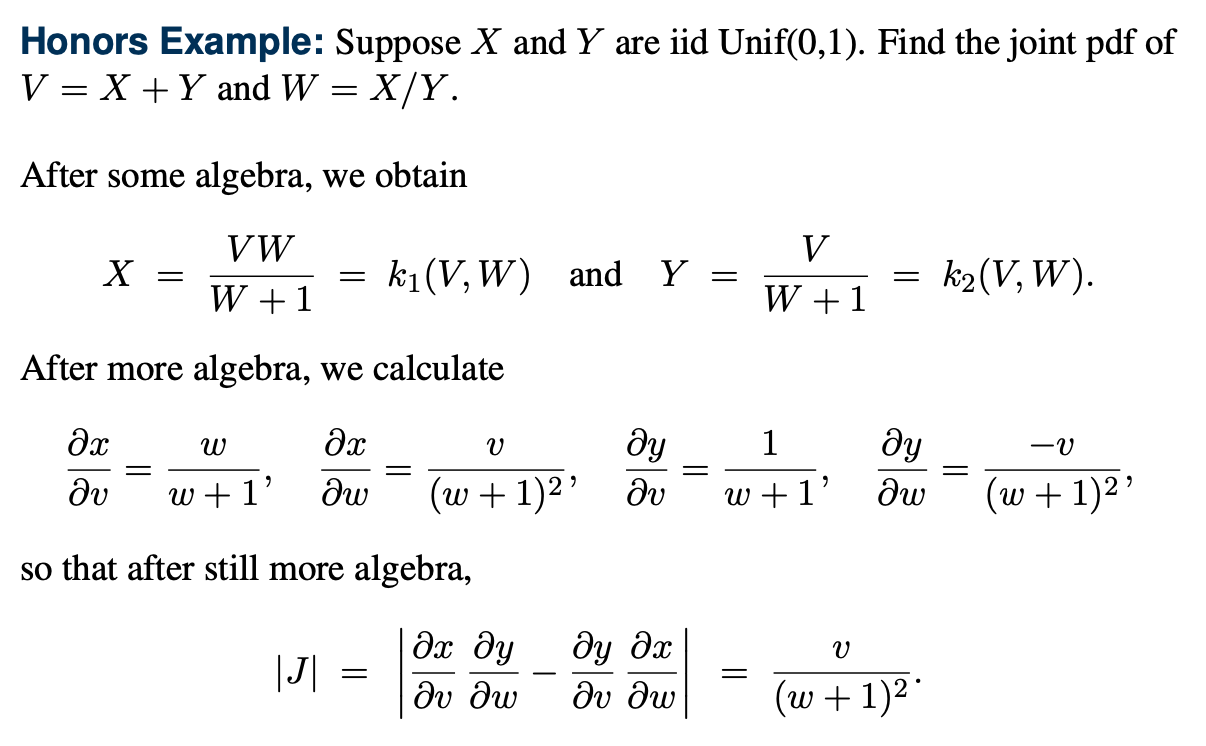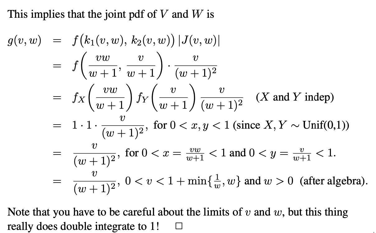위 전개를 통해 우선 우리는 g(v,w)의 joint pdf의 값을 얻었다.