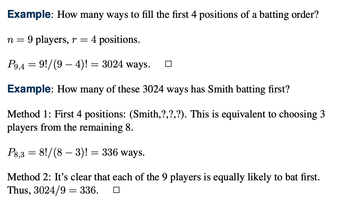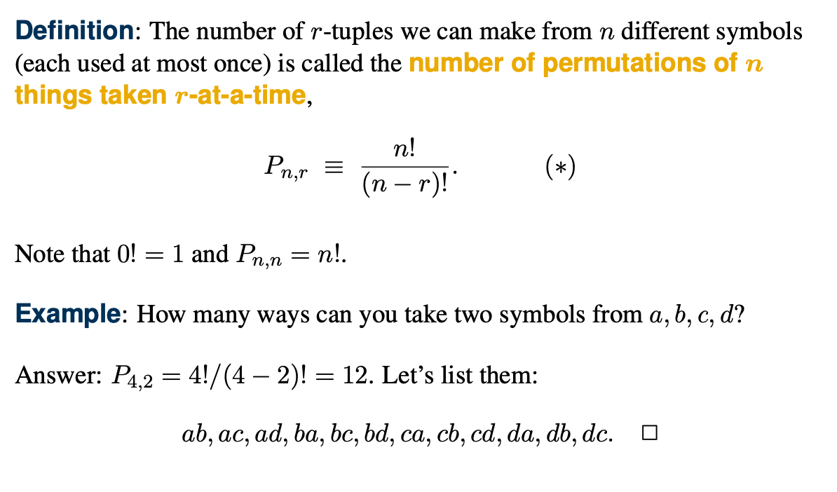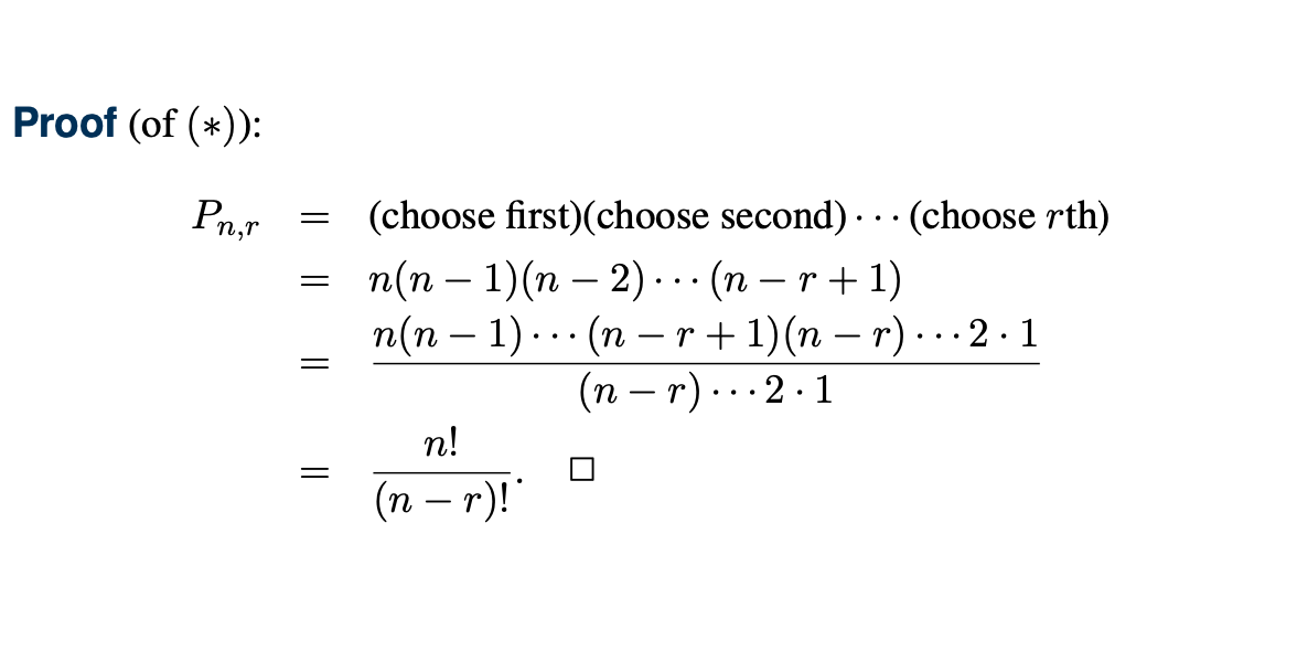 n개 중 r개를 순서에 따라 고르는 것을 Pn,r로 표현한다.