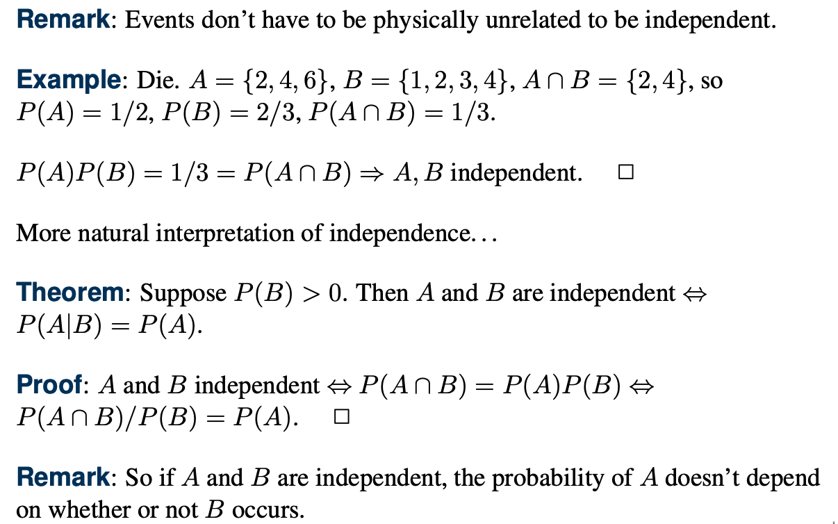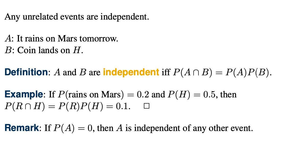 두 사건이 서로에게 독립적일 경우 두 사건의 교집합의 확률은 두 사건의 확률의 곱으로 표현할 수 있다.