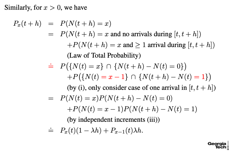 충분히 작은 시간구간 h에서 사건이 1회 발생할 확률은 다음과 같다.