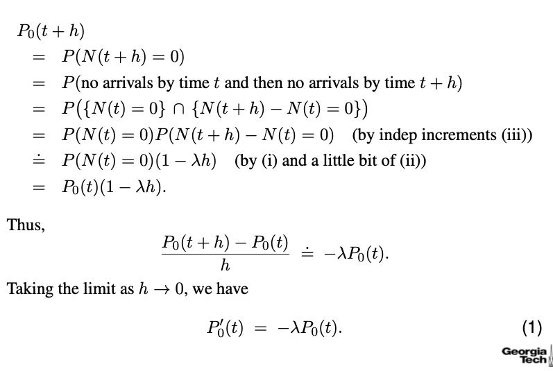 충분히 작은 시간구간 h에서 사건이 0회 발생할 확률은 다음과 같다.