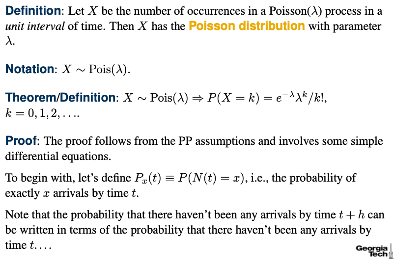 푸아송 과정은 t시간 동안에 발생하는 사건의 수를 나타내는 확률과정인데 정상성과 독립성을 만족하면서, 초기 사건의 수가 0번이고, 발생할 사건의 수가 푸아송 분포를 따라야 한다.