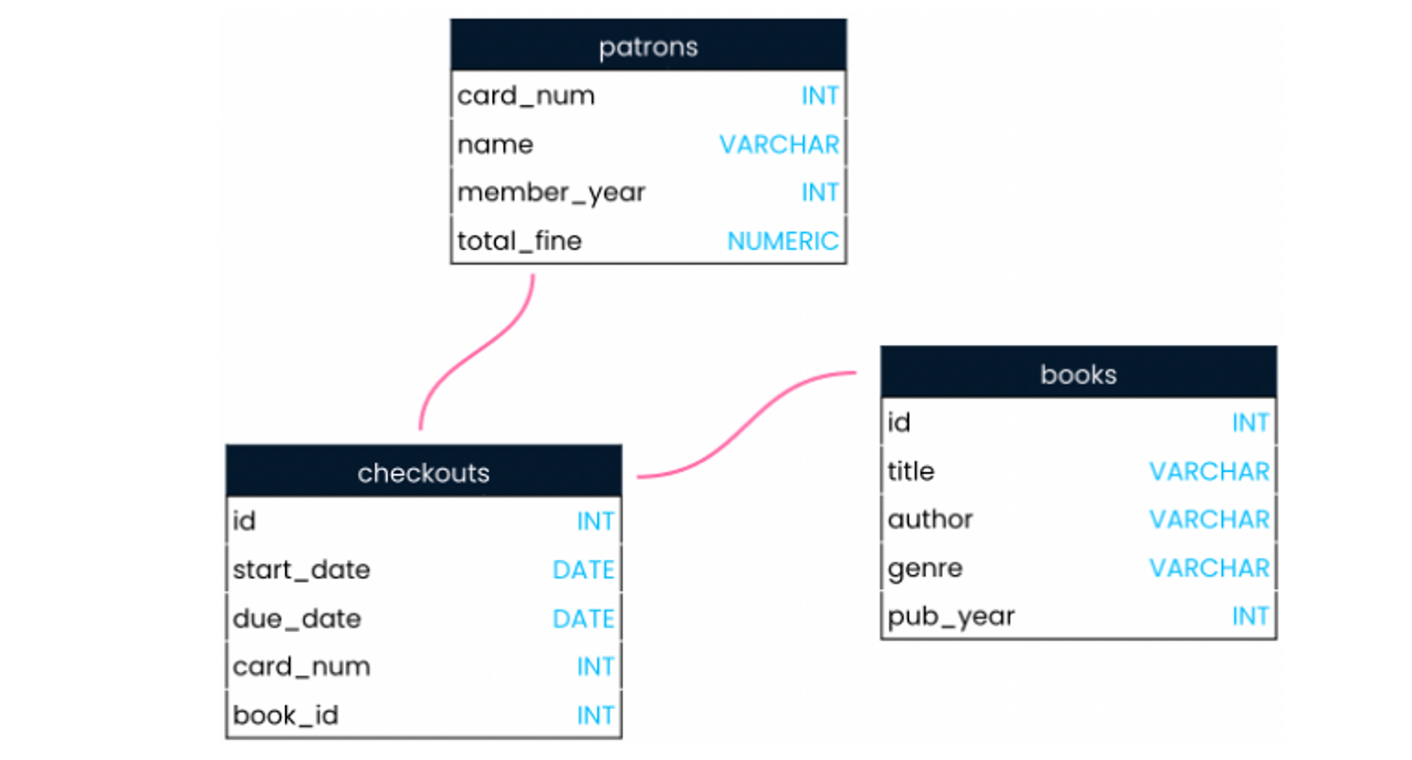 patrons 테이블에서 card_num과 name 필드에 있는 값을 가져와