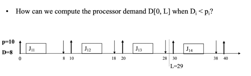 - $D[0,L]$: 시점 0부터 $L$까지의 총 processor demand (요구된 실행 시간)