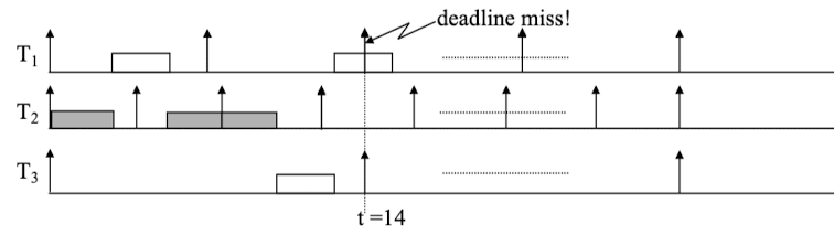 - Deadline 실패의 조건: Deadline 이전까지 실행되어야 할 Job들의 총 실행 시간 > t