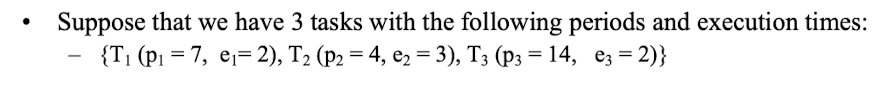 - 각 작업 $\tau_i$는 매 $p_i$초마다 도착 -> 1초에 각 작업이 차지하는 CPU 시간은 $\frac{e_i}{p_I}$