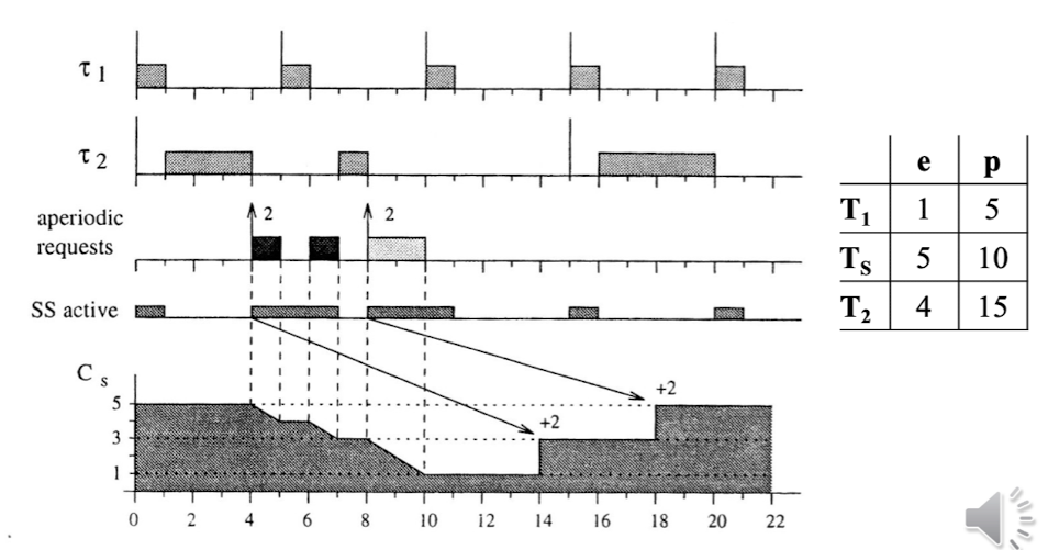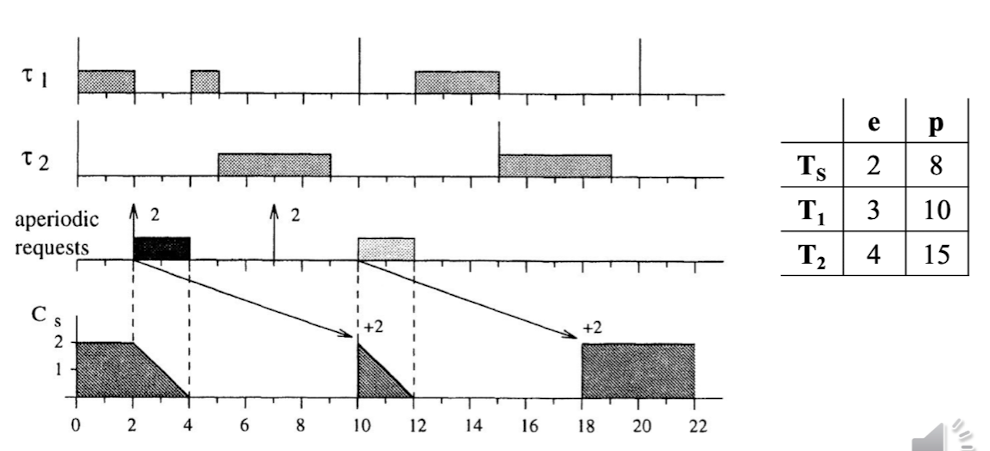 잘 보면, DS의 경우 Budget을 사전에 정의된 Period마다 얻게 되지만, 문제는 aperiodic request가 언제 도착할 지 모른다는 점이다.