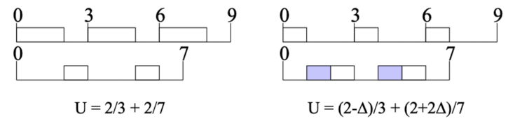 period가 짧은 task의 execution time 중 일부를 period가 긴 task로 옮기니 U가 작아졌다.